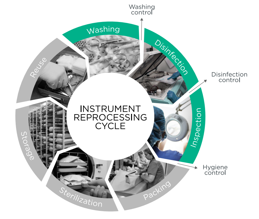 After cleaning, surgical instruments must be disinfected to ensure safe subsequent handling and processing. Thermal disinfection with moist heat, is the most common method for disinfection of medical devices in the hospital setting. Thermodisinfection can be specifically monitored using IT27W indicators,