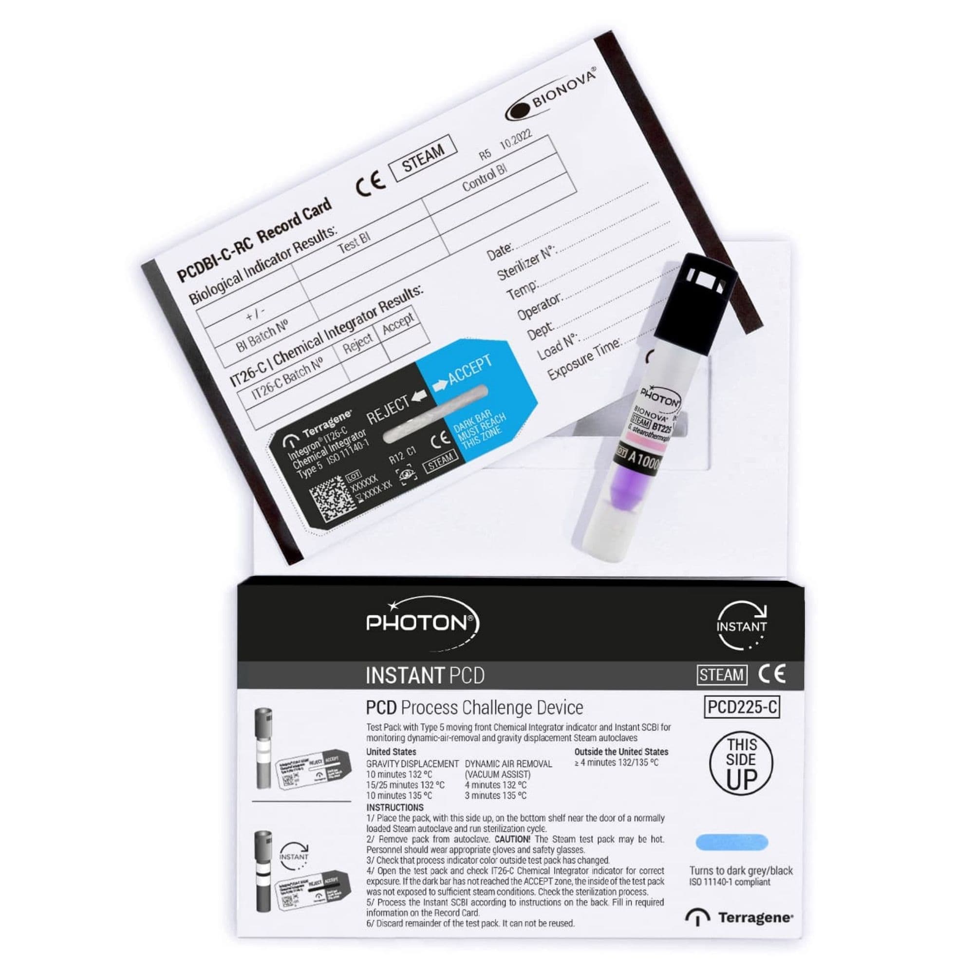 Presentations: 25 PCD225-C + 25 BT225 Biological Indicators per box.