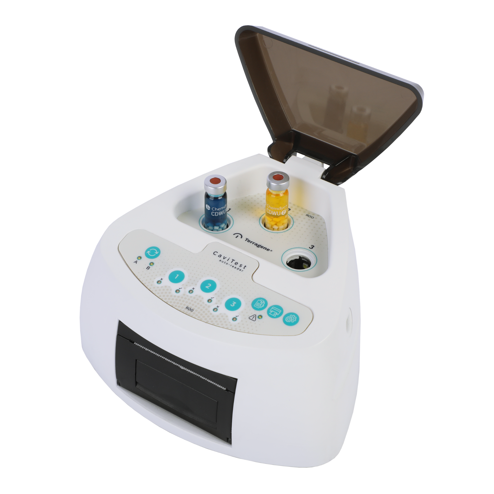 Cavitation Auto‑reader is an advanced device developed by Terragene® for the readout of Chemdye® CDWU‑Z indicators, enabling accurate detection of cavitation energy in ultrasonic washers used for medical instruments.